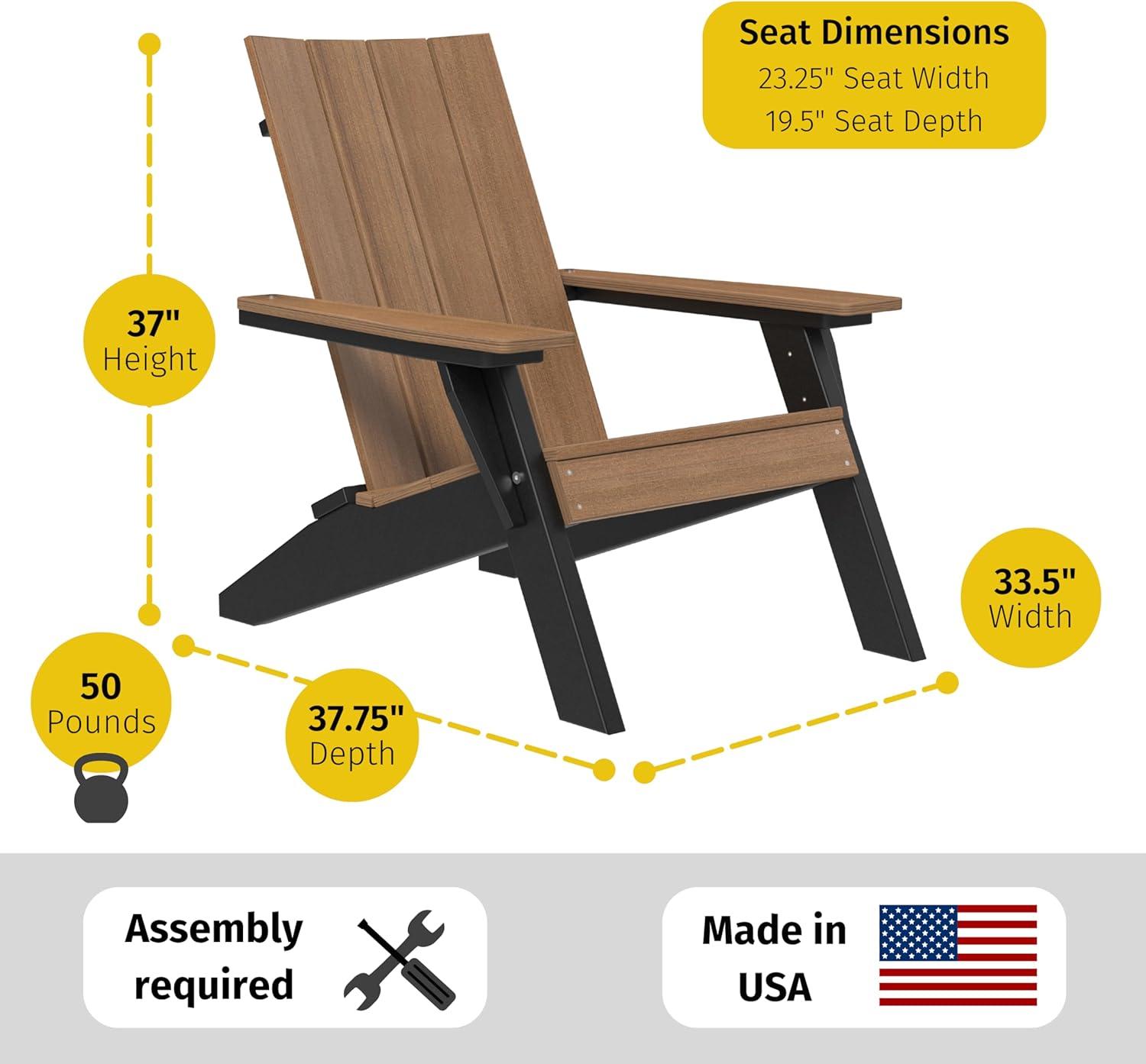 LuxCraft Poly Urban Adirondack Chair, Plastic Chairs for Outside, Camping Chair, Deck Chairs – Amish Made in USA (Coastal Gray)(Coastal Gray & Black)